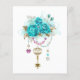 Antique gold key with trendy turquoise roses decorated with leaves of white gold and pink and blue beads. Fashionable colour. Turquoise roses. White gold. Blue tiffany.