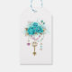 Antique gold key with trendy turquoise roses decorated with leaves of white gold and pink and blue beads. Fashionable colour. Turquoise roses. White gold. Blue tiffany.