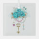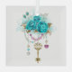 Turquoise Roses with Keys Glass Tree Decoration