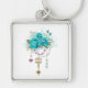 Antique gold key with trendy turquoise roses decorated with leaves of white gold and pink and blue beads. Fashionable colour. Turquoise roses. White gold. Blue tiffany.