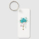 Antique gold key with trendy turquoise roses decorated with leaves of white gold and pink and blue beads. Fashionable colour. Turquoise roses. White gold. Blue tiffany.