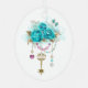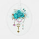 Antique gold key with trendy turquoise roses decorated with leaves of white gold and pink and blue beads. Fashionable colour. Turquoise roses. White gold. Blue tiffany.