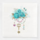 Antique gold key with trendy turquoise roses decorated with leaves of white gold and pink and blue beads. Fashionable color. Turquoise roses. White gold. Blue tiffany.