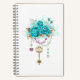 Antique gold key with trendy turquoise roses decorated with leaves of white gold and pink and blue beads. Fashionable colour. Turquoise roses. White gold. Blue tiffany.