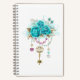 Antique gold key with trendy turquoise roses decorated with leaves of white gold and pink and blue beads. Fashionable colour. Turquoise roses. White gold. Blue tiffany.