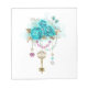 Antique gold key with trendy turquoise roses decorated with leaves of white gold and pink and blue beads. Fashionable colour. Turquoise roses. White gold. Blue tiffany.