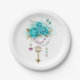 Antique gold key with trendy turquoise roses decorated with leaves of white gold and pink and blue beads. Fashionable colour. Turquoise roses. White gold. Blue tiffany.