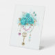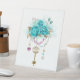 Antique gold key with trendy turquoise roses decorated with leaves of white gold and pink and blue beads. Fashionable colour. Turquoise roses. White gold. Blue tiffany.