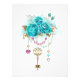 Antique gold key with trendy turquoise roses decorated with leaves of white gold and pink and blue beads. Fashionable colour. Turquoise roses. White gold. Blue tiffany.