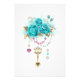 Antique gold key with trendy turquoise roses decorated with leaves of white gold and pink and blue beads. Fashionable colour. Turquoise roses. White gold. Blue tiffany.
