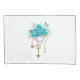 Antique gold key with trendy turquoise roses decorated with leaves of white gold and pink and blue beads. Fashionable colour. Turquoise roses. White gold. Blue tiffany.