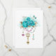 Antique gold key with trendy turquoise roses decorated with leaves of white gold and pink and blue beads. Fashionable colour. Turquoise roses. White gold. Blue tiffany.