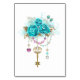 Antique gold key with trendy turquoise roses decorated with leaves of white gold and pink and blue beads. Fashionable colour. Turquoise roses. White gold. Blue tiffany.