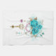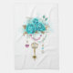 Antique gold key with trendy turquoise roses decorated with leaves of white gold and pink and blue beads. Fashionable colour. Turquoise roses. White gold. Blue tiffany.