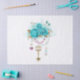 Antique gold key with trendy turquoise roses decorated with leaves of white gold and pink and blue beads. Fashionable colour. Turquoise roses. White gold. Blue tiffany.