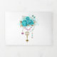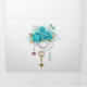 Antique gold key with trendy turquoise roses decorated with leaves of white gold and pink and blue beads. Fashionable colour. Turquoise roses. White gold. Blue tiffany.