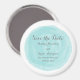 Trendy and stylish Watercolor Save the Date Magnet with a circle brushed watercolor look turquoise background. This elegant and modern save the date magnet is easy to customise with your wedding details. For more customisation options, click on the Customise It button.