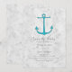 Perfect for a nautical themed wedding is this Rustic Anchor Save the Date Announcement with a turquoise boat anchor on a light grey marble look background. This classic and simple save the date invite is easy to customise with your wedding details. Find more personalisation options by clicking Customise.