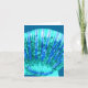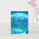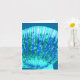 A scallop sea shell shape fills up the entire front of this blank note card showing off it's speckled bright colours of the ocean in blue, teal, sea foam green and turquoise.