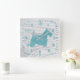 Turquoise Scottie White Wash Wood Square Wall Clock