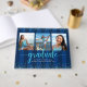 Let your favourite grad be proud, rejoice and always remember her milestone with this stunning keepsake graduation guest book. Stunning, modern, sparkly turquoise blue typography script overlays three custom photos on a navy blue striped background with turquoise and gold dots. Personalise the custom text with your grad’s name, school, and class year. A customisable quote is on the back. Matching invites, thank you cards, cap toppers, napkins, plates and other graduation goodies are also available in this trendy and stylish collection. Guaranteed to preserve the cherished memories of this special occasion!