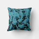 Featured are small, shapes in an overall contemporary print pattern in shades of light and dark turquoise on a black background. The overall design is suggestive of a modern art print in splashes of paint and creates a sophisticated, artistic, and elegant look, as well as comfortable, relaxing vibe for living area, bedroom, workspace, terrace, or patio decor, offering a feeling of warmth and tranquillity. There is much decorating potential in this accent piece, which fits into numerous styles (innovative to traditional), from retro/vintage to farmhouse to modern ranch style to rustic hacienda to urban loft and high rise.
