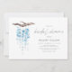 Bridal shower invitation features turquoise shell mobile hanging from driftwood branch.