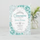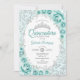 Turquoise silver Quinceanera celebration invitation. Features, script font, silver butterflies, watercolor roses and tiara. Perfect for an elegant princess style glam celebration. Personalise with your own details. Printed Zazzle invitations or instant download digital printable template.