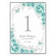 Turquoise Silver Floral Quinceanera Table Number