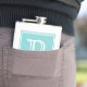 The flask itself is fine. It’s a cheap flask, obviously bought in bulk, however am prepared to overlook that. Given that it is a personalized item, I would have liked to have seen gift boxing instead of the generic packaging. Terrible printing, and/or quality. It’s a cheap, tacky vinyl. It is not cut straight and is also applied in a way that it is overhanging the bottom, causing the glue to catch on items and it will eventually roll and tear, damaging the wrap.