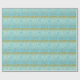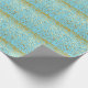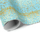 Wrapping paper is shown in Turquoise with a steam of mini Golden-coloured stars forming stripes printed all over.
