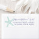 Beachy elegant and modern teal aqua turquoise and navy blue starfish return address labels, perfect for a coastal beach wedding or tropical seashell theme party.