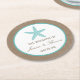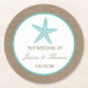 Turquoise Starfish Burlap Beach Wedding Collection Round Paper Coaster