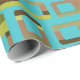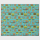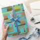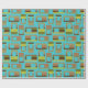 This wrapping paper has a mid-century modern design of rounded rectangles in shades of green and brown with holes in them on a field of turquoise. If you like the design but prefer different colours, message me.