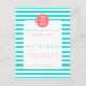 A bright turquoise and Coral Striped,Modern Save the Date Postcard. All my invitations are available with several matching accessories. This save the date card can also be used for a general party invitation or converted into an entire invitation suite with several matching accessories. If you have any questions or special requests for your invitations, let me know how at theroyaldesignstudio@yahoo.com Thank you for browsing!