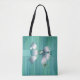 Looking for a large-size flea market or garage sale bag? This sturdy tote in subtle turquoise and blue stripes with a lovely bow in the centre is available in medium: 16 x 16 and large: 18 x 18 inches. Also comes as a cross-body bag in two sizes. If you wish to show a monogram, just replace the letter on the front (and back) with your own monogram initial. If you don't want a monogram, you can "customise" to delete the text box.