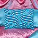 This contemporary design features turquoise, blue, and teal swirled ribbons in a dynamic and contemporary design. The abstract swirls add movement and the colours work well as complements to a blue decor or accents to a neutral decor.