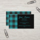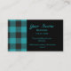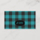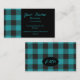 Turquoise Teal Black Buffalo Plaid Check Monogram Business Card