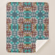 Turquoise Teal Blue Dark Red Brown Grey Tribal Art Sherpa Blanket