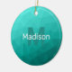 Turquoise teal geometric mesh pattern Monogram Ceramic Ornament
