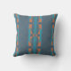 An abstract combination of shapes and lines in turquoise blue, teal, and rust orange on a slate blue background creates a vertical tile pattern with zigzag lines in rows, reminiscent of the Mediterranean and Native American/Southwest art styles. This simple and contemporary design is suggestive of both a tribal art and mosaic pattern in subdued hues. This is an artistic and polished but warm look for living area, bedroom, workspace, terrace, or patio decor and inspires a feeling of comfort and relaxation. There is much potential in this accent piece, which fits into numerous decorative styles, from retro/vintage to rustic ranch to modern urban loft to trendy bohemian.