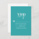 Elegant turquoise/teal and white wedding RSVP card formatted vertically.