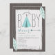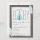 Turquoise Tipi + Feathers Baby Shower Invitation