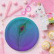 Turquoise to Purple Peacock Feather Heart paper plates. Pretty for a wedding or birthday party.