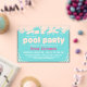 Fun pool party invitation in light turquoise and pink printed on acrylic for a cool see-through effect on the water droplets and water splashes with pool party written in a festive balloon font. Add the birthday girl's name in strong pink. Acrylic pool party invitation for a pool themed birthday party in turquoise and pink with white details and see through details. Water splash pool party birthday invitation printed on an acrylic invitation for a cool and unique touch for your daughter's pool birthday party.