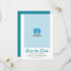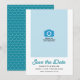Turquoise Waves Photo Save the Date card has turquoise aqua waves pattern back side.
