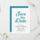 Turquoise Waves Save the Date card has turquoise waves pattern back side.