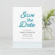 Turquoise Waves Save the Date card has turquoise waves on the front and you can add your photo on the back side.