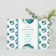 This fun basketball party invitation is fully customisable and features a pattern of tiny light teal and white basketballs on the front and back - customise her party details on a white background with light teal border accents - by katz_d_zynes