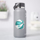 This custom basketball sticker features the realistic image of a basketball that has alternating turquoise and white recolored panels upon which you can personalise the athlete's name and jersey number plus school or club name and mascot name - by katz_d_zynes